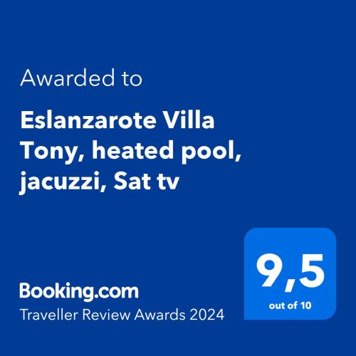 Eslanzarote Eco Villa Tony, heated pool, jacuzzi, Sat tv, Super wifi 16B Calle Guirre, La Costa 96 100 35 Total 96% from 100%