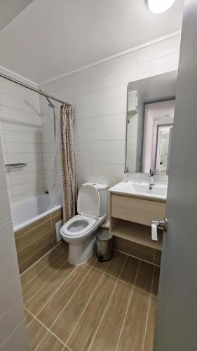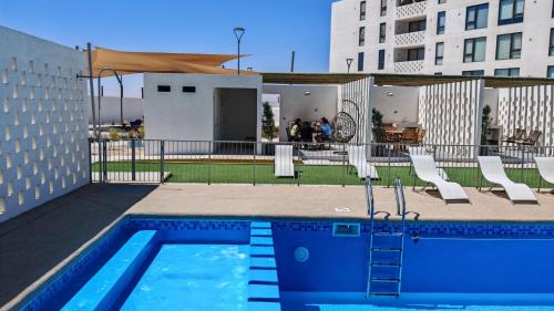 Departamento Nuevo Cerca de la Playa ligger i Bahia Inglesa, 7 minuters promenad från Las Machas strand, 700 m från Playa La Piscina och 2,9 km från BahIa Loreto. Det här boendet erbjuder en egen pool, gratis WiFi och gratis privat parkering.