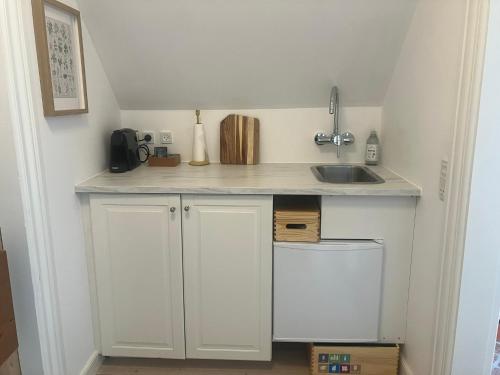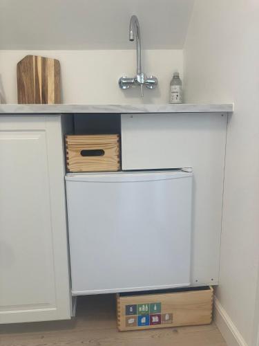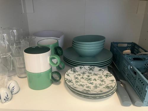 Pentryt har ett kylskåp, en ugn och en spishäll samt en dusch med gratis toalettartiklar och hårtork.