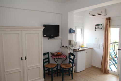 Olympias Studio "Pitsidia" ligger i Pitsidia, 2,1 km från Kommos strand, och erbjuder boende med en trädgård, gratis privat parkering, en terrass och en restaurang. Boendet ligger cirka 2,5 km från Kalamaki strand, 7,6 km från Phaistos och 10 km från Museum of Cretan Ethnology. Alla rum har balkong med utsikt över staden samt gratis WiFi.