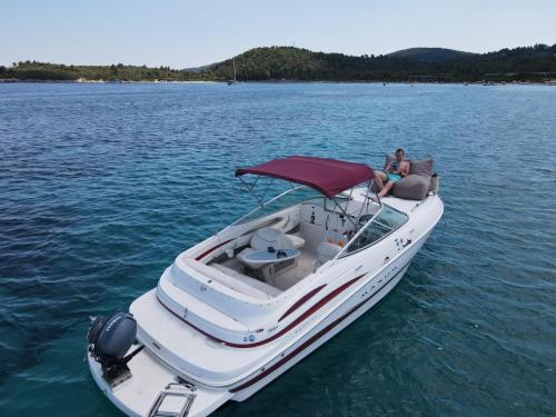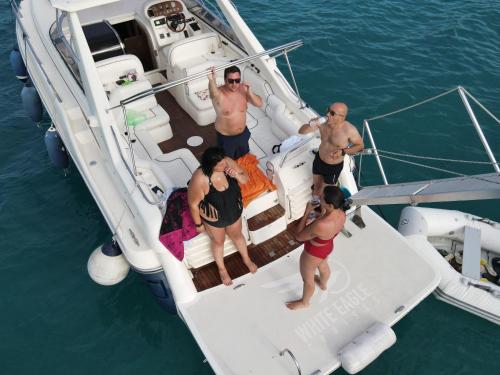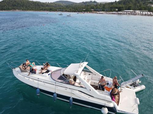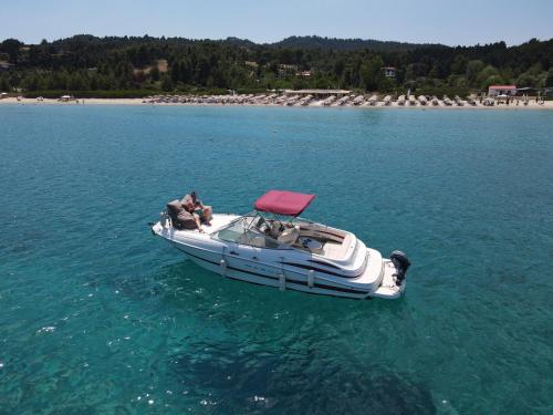 White Eagle Cruises Neos Marmaras Sithonia ligger i Neos Marmaras, en kort bit från Kohi Beach i Porto Carras och 2,3 km från Porto Carras huvudstrand, och erbjuder en egen strand, en terrass och massagebehandlingar.