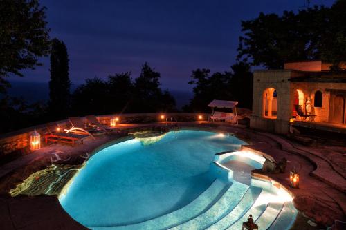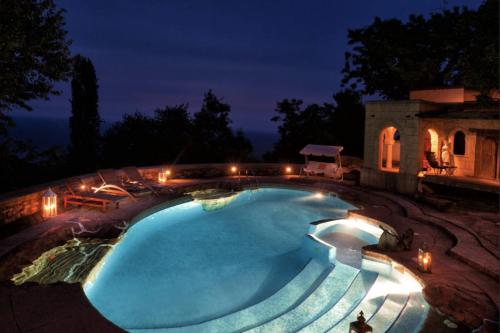 Chateau Cascara ligger i Mouresi och erbjuder en pool, en trädgård, en terrass, gratis WiFi och utsikt över poolen. Boendet har ett bubbelbad.