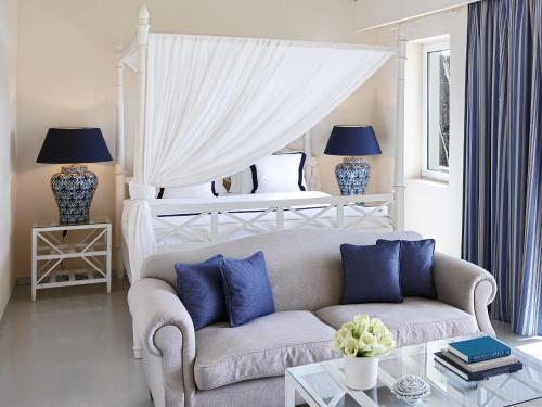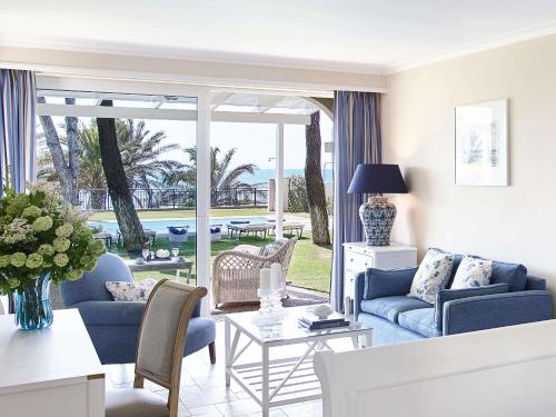 Det 5-stjärniga Grecotel La Riviera at Riviera Olympia & Aqua Park ligger på en 200 hektar stor egendom längs en 2 km lång sandstrand i Kyllini. Här finns en sötvattenspool, 2 havsvattenpooler och ett spacenter. Anläggningen är klassiskt inredd med välvda väggar och vita toner. Här erbjuds en mängd olika matställen, bland annat internationella rätter och medelhavsmat, samt ett brett utbud av faciliteter. Som gäst har du fri entré till det nya, exklusiva vattentema och äventyrsparken Olympia Aqua Park.