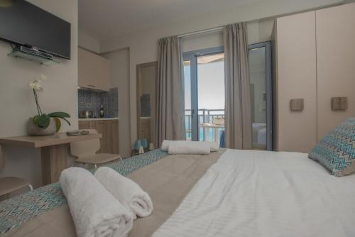 Athina Residence erbjuder boende 40 meter från stranden i Lentas. Här har du utsikt över havet och den berömda Lion Rock.
