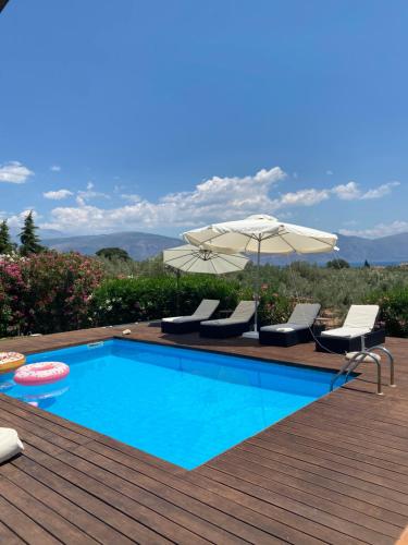 Georges Villa Galaxidi, family, pool and garden ligger i Galaxidhion, 2,3 km från Super Kalafatis strand och 28 km från Archaeological Museum of Delphi, och erbjuder boende med gratis WiFi, en säsongsöppen utomhuspool och luftkonditionering. Denna villa har en egen pool, en trädgård och gratis privat parkering.