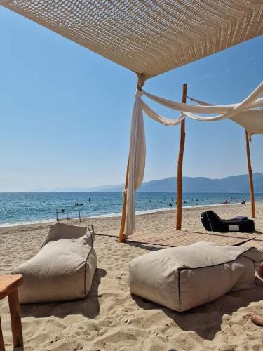 Dafni Sea Apartments ligger i Asprovalta, bara 2 minuters promenad från Asproválta strand, och erbjuder boende med en trädgård, en terrass och gratis WiFi. Detta semesterhus erbjuder boende med en balkong.