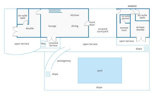 Denna villa har 4 sovrum, 1 kök med diskmaskin och mikrovågsugn samt 4 badrum med dusch, hårtork och tvättmaskin. Handdukar och sängkläder finns tillgängligt i denna villa.