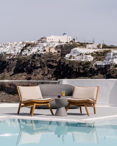 Hotellet är byggt i den arkitektur som är tradition på öarna i området, och erbjuder rum med handgjorda möbler och balkonger med utsikt över calderan. Det finns även juniorsviter med bekväma vardagsrum. Alla boenden har regndusch.