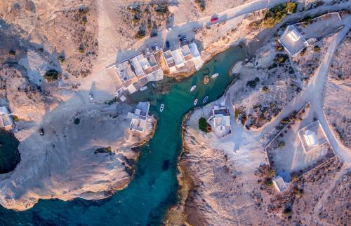 Milos katakomber ligger 8,9 km från boendet, medan Sulphur Mine ligger 16 km bort. Flygplatsen (Milos nationella flygplats) ligger 9 km från boendet. Boendet erbjuder flygplatstransfer mot en avgift.
