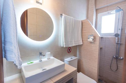 På Vassilia on the beach Serifos har alla rum balkong. Alla rum på boendet har platt-tv, luftkonditionering och eget badrum med dusch och gratis toalettartiklar. En del rum har terrass. Boendeenheterna har ett kylskåp.