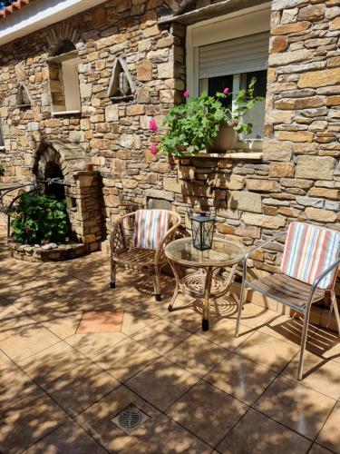 På I Avli tou Valsakia har du som gäst en terrass, utsikt över staden, en sittgrupp, en platt-tv, ett fullt utrustat kök med ett kylskåp och en ugn samt ett eget badrum med bidé. Dessutom kan boendet tillhandahålla handdukar och sängkläder mot en extra kostnad.