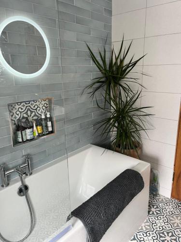 Detta semesterhus har en terrass och utsikt över trädgården och erbjuder 3 sovrum, 1 vardagsrum, 1 platt-tv, 1 utrustat kök med kylskåp och diskmaskin samt 1 badrum med dusch. Handdukar och sängkläder finns tillgängligt i detta semesterhus.