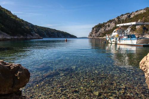 Kuća Ella har utsikt över havet och erbjuder boende med en gemensam lounge, en terrass och grillmöjligheter, 8 minuters promenad från Uvala Voluja-stranden. Detta semesterhus erbjuder gratis privat parkering, ett gemensamt kök och gratis WiFi.