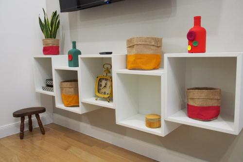 Denna lägenhet har en platt-tv med kabelkanaler. Denna lägenhet har även ett välutrustat kök med ett kylskåp, en diskmaskin och en ugn samt hårtork.