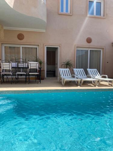 Villa Udad har utsikt över poolen och erbjuder boende med en balkong och kaffemaskin, 19 minuters promenad från Aftas strand. Boendet ligger 4 minuters promenad från Plage Imin Turga och erbjuder en terrass och gratis privat parkering.