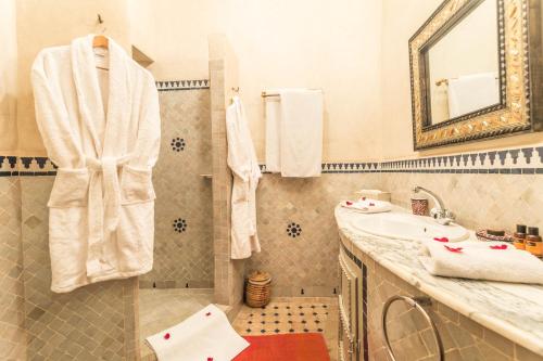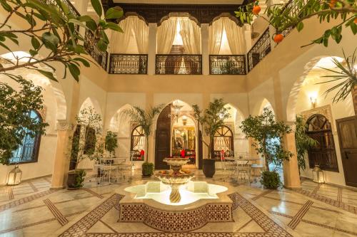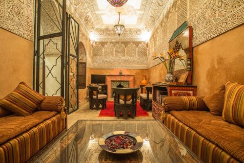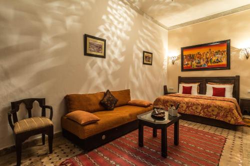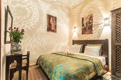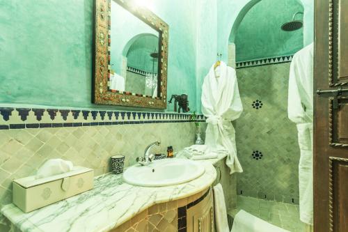 Nasreens rum är luftkonditionerade och badrummen är inredda med traditionellt zellige- och tadelaktkakel. Alla rum har utsikt över eller direkt tillgång till uteplatsen på innergården.