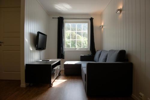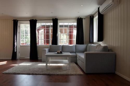 Alla stugor på Camping Sjøholt har en sittgrupp och vissa har även kabel-tv. Som gäst kan du koppla av på den egna verandan som har stolar och en grill. I köket finns både kyl och frys.