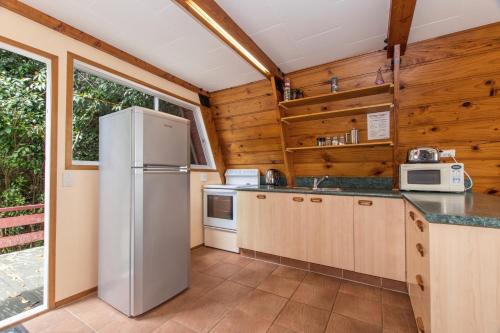 Detta semesterhus har 2 sovrum, 1 kök med kylskåp och ugn samt 1 badrum med dusch, hårtork och tvättmaskin. Privat parkering finns på The Tree House Wairoro Park - Russell Holiday Home.