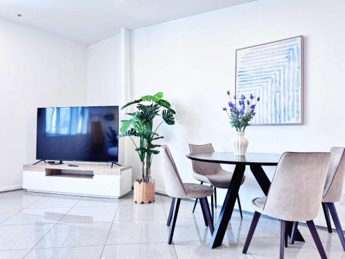 Free Parking Spacious 2BR Apt Walk to Sky Tower är perfekt beläget i centrala Auckland och erbjuder utsikt över staden samt ett fitnesscenter. Boendet ligger 2,7 km från Masefield Beach och erbjuder gratis WiFi i alla utrymmen.