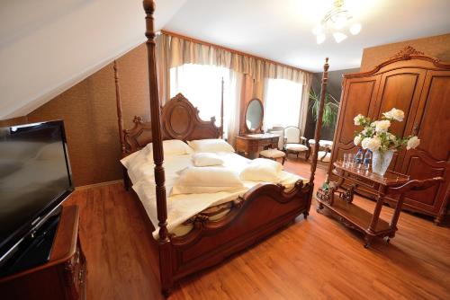 På Zajazd Zagłoba är varje rum utrustat med garderob, platt-tv, eget badrum, sängkläder och handdukar.