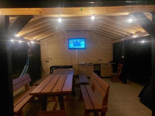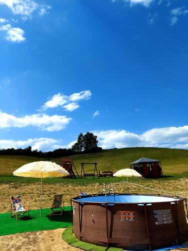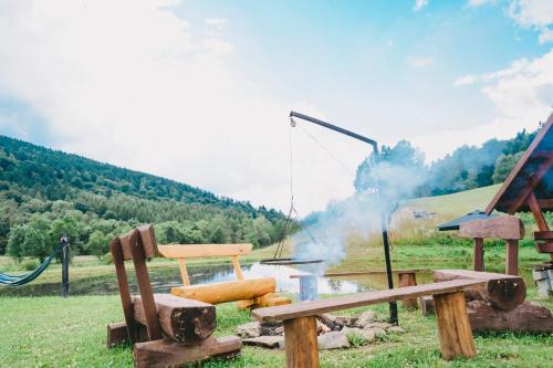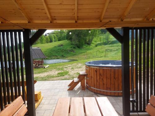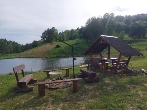 Domki pod Bukowym lasem ligger 30 km från Skansen Sanok och erbjuder boende med en säsongsöppen utomhuspool, en trädgård och en egen strand samt restaurang. Både WiFi och privat parkering finns på Domki pod Bukowym lasem utan extra kostnad.