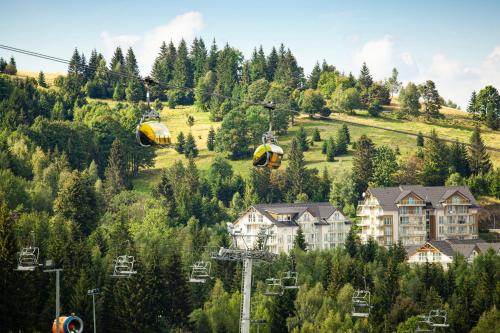 Apartament Górski z Widokiem "Czarna Góra Resort" - Sauna - Narciarnia - Parking erbjuder en bastu. Boendet erbjuder skiduthyrning, försäljning av liftkort och skidförvaring, och du kan åka skidor i omgivningarna.