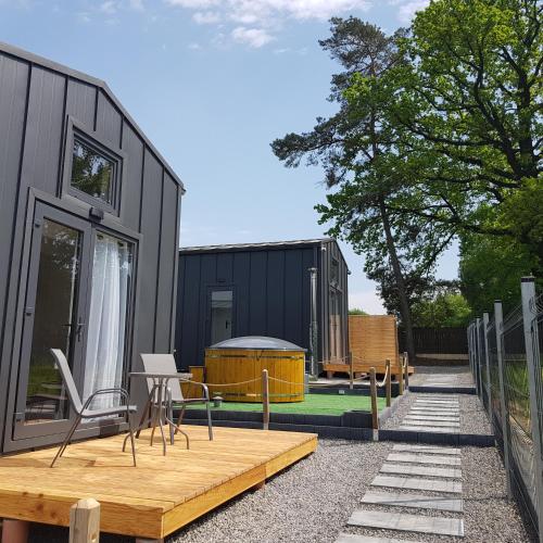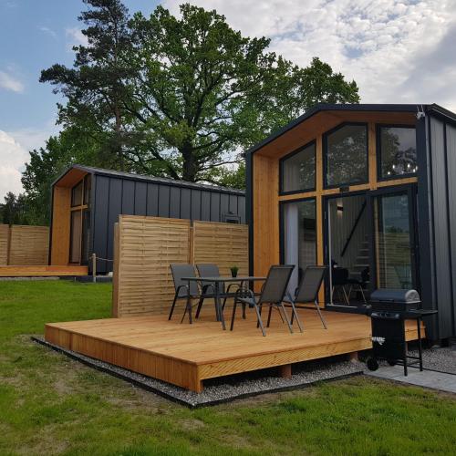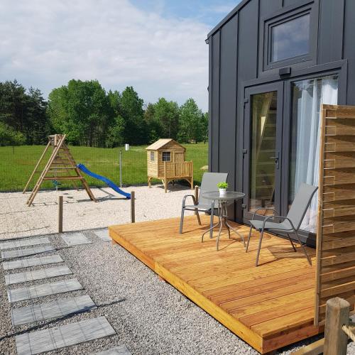 På DOMKI POD DĘBAMI, Radawa har du som gäst en terrass, utsikt över trädgården, en sittgrupp, platt-tv med kabelkanaler, ett fullt utrustat kök med ett kylskåp och en mikrovågsugn samt ett eget badrum med dusch. En spishäll och en vattenkokare finns också.