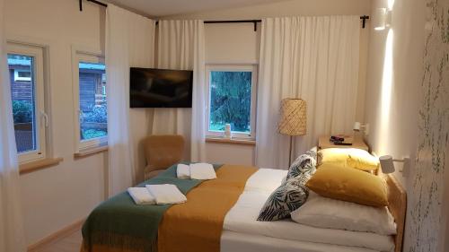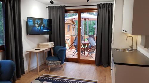 Zakątek Mazurski GIM ligger i Nowa Kaletka och erbjuder boende med en terrass eller balkong, gratis WiFi och platt-tv samt en trädgård och en restaurang.