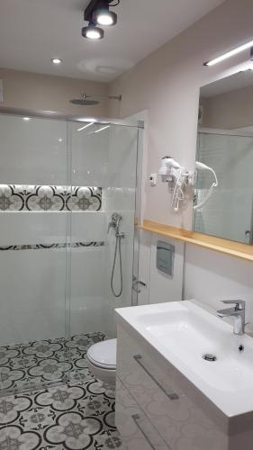 Det finns ett fullt utrustat eget badrum med en dusch och gratis toalettartiklar.