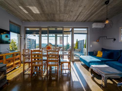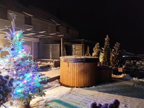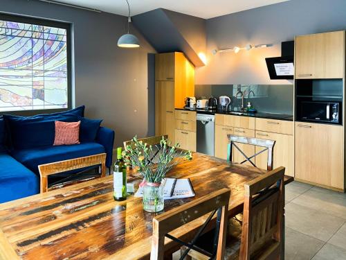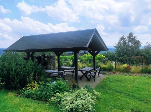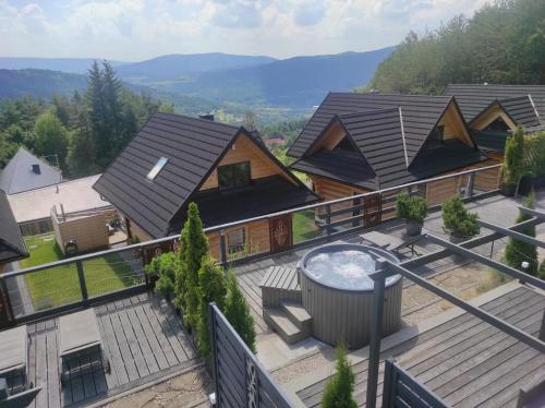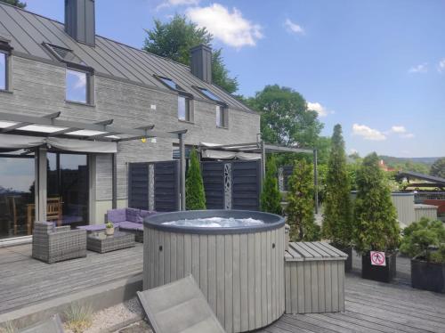 På Słoneczny Chełm - Dla aktywnych wypoczywających - Sauna, Balia&Jacuzzi Prive w cenie har du som gäst en terrass, utsikt över bergen, en sittgrupp, en platt-tv, ett fullt utrustat kök med ett kylskåp och en diskmaskin samt ett eget badrum med dusch och gratis toalettartiklar. En mikrovågsugn, en spishäll och en brödrost finns också samt en kaffemaskin och en vattenkokare.