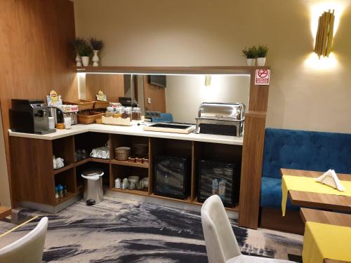 The cosy breakfast room features a kitchenette. Fresh coffee, tea, fruit and cookies are offered free of charge all day long.