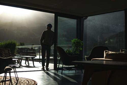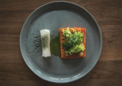 Guests can enjoy unique views of mountains and waterfalls from the sun terrace and the lounge, which features a fireplace and a billiard table.