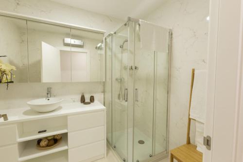 Denna lägenhet har 3 sovrum, 1 kök med kylskåp och diskmaskin samt 2 badrum med dusch, hårtork och tvättmaskin. Handdukar och sängkläder finns tillgängligt i denna lägenhet.