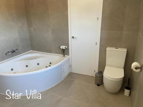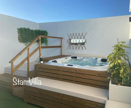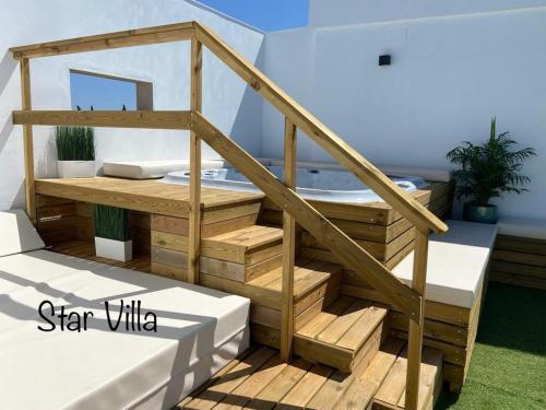 A recently renovated property, Star Villa Conil con jacuzzi is situated in Roche near Fuente del Gallo Beach, Cala Puntalejo. This property offers access to a balcony, free private parking and free WiFi. Outdoor seating is also available at the villa.