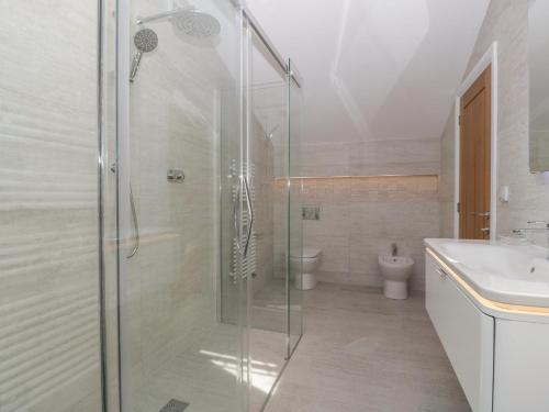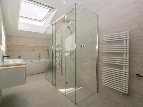 Detta semesterhus har 3 sovrum, 1 fullt utrustat kök med kylskåp och diskmaskin samt 3 badrum med dusch och bubbelbad. Här finns en tv.