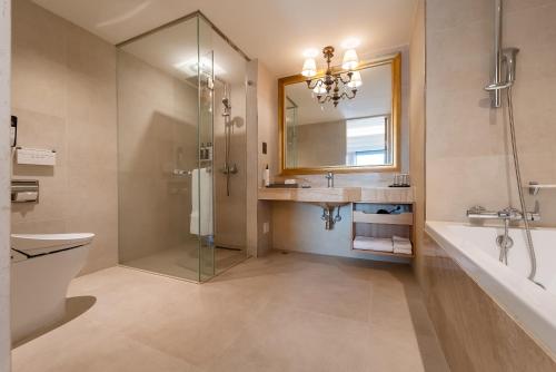 Rooms feature air-conditioning/heating facilities, a cable TV and a seating area. Bathroom comes with a bathrobe, a hair dryer and toiletries.