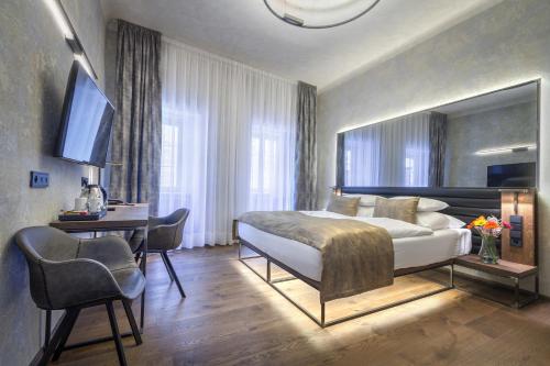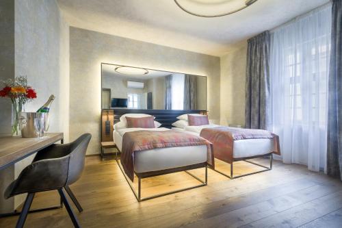 Set in a 14th-century building, rooms at Hotel Waldstein are fitted with modern furniture. Each room has a flat-screen satellite TV and free tea and coffee making facilities.