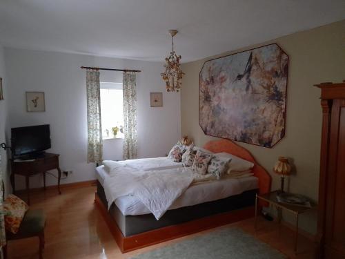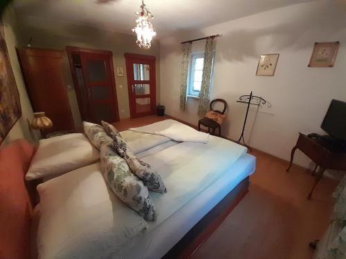 På Doppelbettzimmer auf Bauernhof in Naturalleinlage har varje rum garderob, platt-tv, eget badrum, sängkläder och handdukar. Det egna badrummet är utrustat med dusch och hårtork.