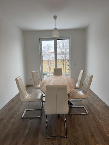 Wunderschöne Maisonette Ferienwohnung in Leipzig Taucha 2 u 3 OG rechts ligger 9,4 km från Leipzig centralstation och 10 km från Lepzigmässan, och erbjuder boende med gratis WiFi och en terrass. Denna lägenhet erbjuder boende med en balkong.
