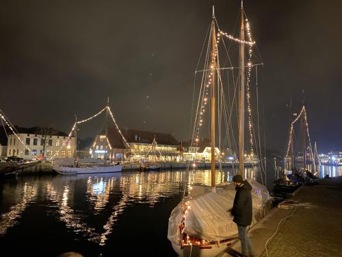 Houseboat Lottas meerZeit, Kaminofen, Dachterrasse, Parkplatz erbjuder cykeluthyrning.