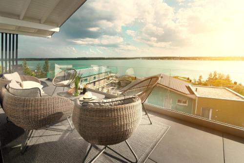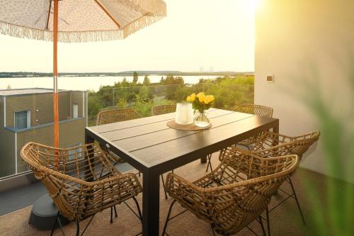 Petit Chalet 69 - Am Hainer See har en trädgård, en terrass och en restaurang och erbjuder boende i Neukieritzsch med gratis WiFi och utsikt över sjön. Detta boende erbjuder tillgång till en balkong och gratis privat parkering.