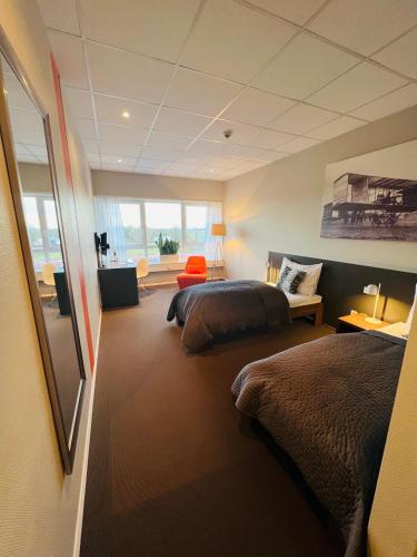 På Aircraft Hotel & Events har samtliga rum en sittgrupp, en platt-tv med satellitkanaler, ett värdeskåp och ett eget badrum med en dusch, gratis toalettartiklar och hårtork. På boendet ingår sängkläder och handdukar i samtliga rum.