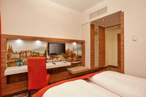 De moderna, eleganta rummen på det historiska H+ Hotel Lübeck har platt-tv, WiFi och eget badrum.