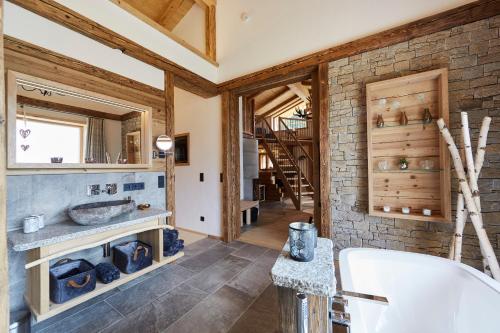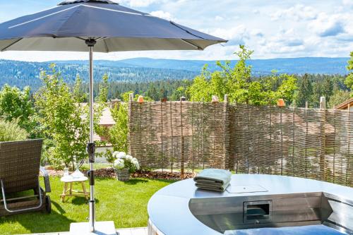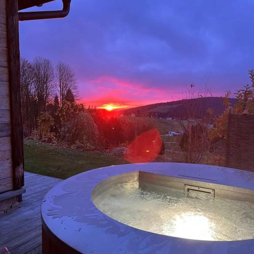 Dreisessel-Chalets im bayerischen Wald- Chalet Plöckenstein- erbjuder en rad olika wellnessfaciliteter, bland annat en bastu och ett bubbelbad. Boendet erbjuder cykeluthyrning.