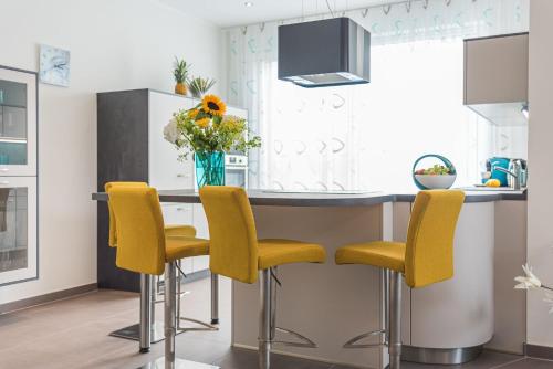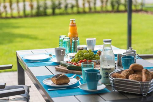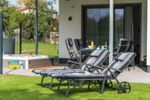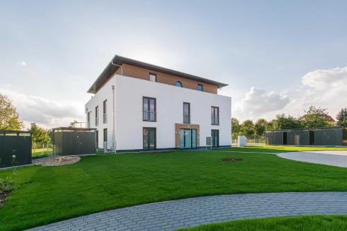 Luxus_SPA_EG_Fewo AQUAMARIN _WE 1_ ligger i Göhren-Lebbin, bara 3,3 km från Fleesensee, och erbjuder boende med en utomhuspool, en trädgård, en gemensam lounge och gratis WiFi. Boendet byggdes 2019 och erbjuder boende med en terrass.