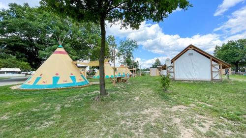 Tipi Missouri erbjuder en terrass och utsikt över sjön och ligger i Falkenberg, 48 km från Reinharz Castle och 23 km från Castle Hartenfels. Detta boende erbjuder tillgång till ett pingisbord.