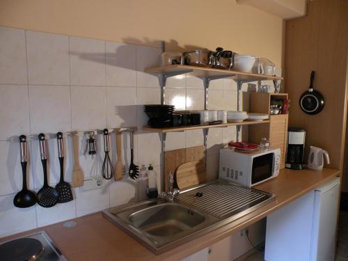 Boendet har ett fullt utrustat pentry med ett kylskåp och en kaffemaskin, en tv och ett eget badrum med dusch. Det finns också en mikrovågsugn, en spishäll och en vattenkokare.