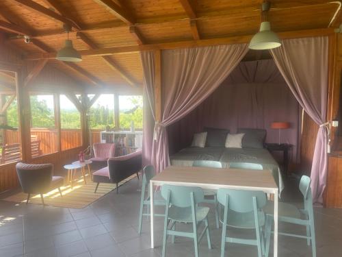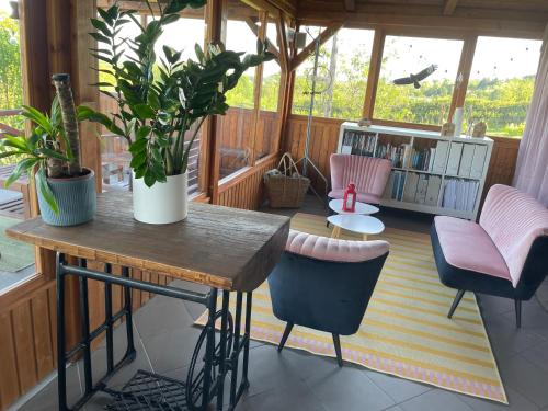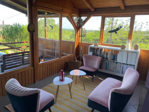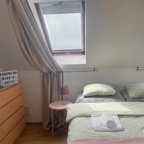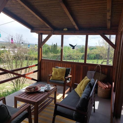 Panorama Wine & Chill ligger i Hévíz och erbjuder boende med utsikt över bergen, gratis WiFi och gratis privat parkering, 5 km från Heviz termalsjö.