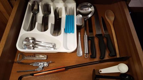 Boendet är utrustat med en platt-tv, ett eget badrum med dusch, badkar och hårtork samt ett kök med ett kylskåp, en mikrovågsugn och en spishäll. En brödrost finns också samt en kaffemaskin och en vattenkokare.