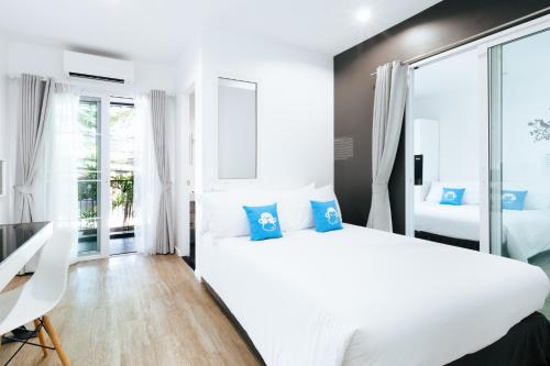 Fitted with hardwood floor, fully air-conditioned rooms at Blu Monkey Bed & Breakfast Phuket are tastefully furnished with neutral tone décor and graphic murals. Each room features a flat-screen cable TV, a desk and a refrigerator. A private bathroom comes with free toiletries and shower facilities.